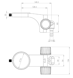 型號名稱:SF8升降組 說 明: ● 金屬燕尾滑塊,立柱安裝孔直徑Φ 25mm ● 鏡體安裝孔直徑Φ 76mm ,兩孔中心距 140mm
